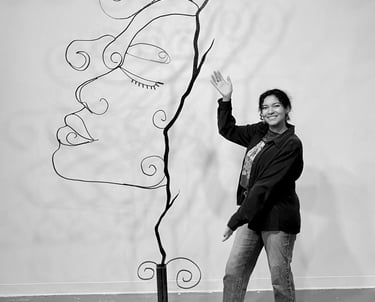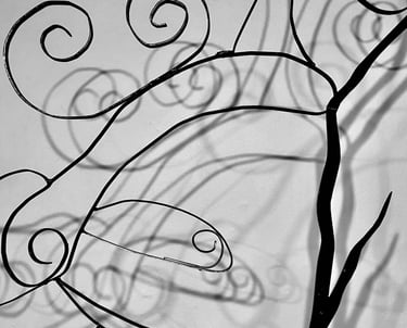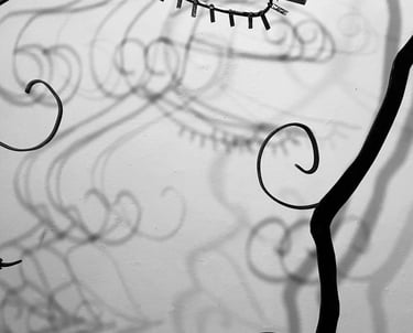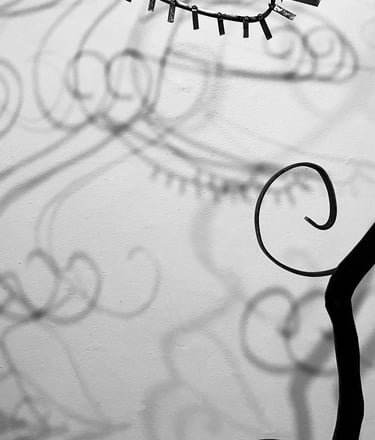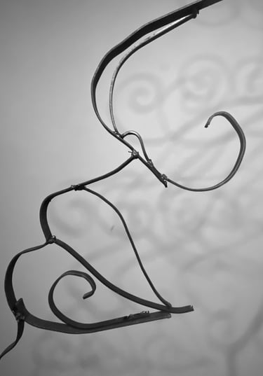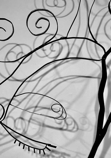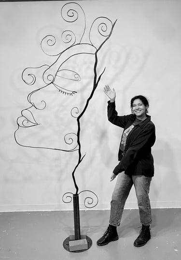 This piece Prospering Tranquility is a symbol of inner reflection and prosperity. It undergoes the idea of the serene feeling of growth within one’s battles. I use the icon of the spiral to indicate the endless cycle to seek peace, love and acceptance. The spiral can spiritually indicate a connection to divinity, with its outer ego and inner soul. It is the representation of birth, life, and death. It allows for the new and next stage in this realm. Prospering Tranquility is indicative of the emotional flow of energy to persevere. The spiral is also a recurring image presented in many forms in my work, as a resemblance to my spirit and my curly hair. This installation is made with various steel rods, sheet metal, found objects all connected by mid welding. The shapes of the face are organic and abstract, reflecting the innate growth of nature. I would like the viewer to consider their own path to serenity, and reflect their own spirit.