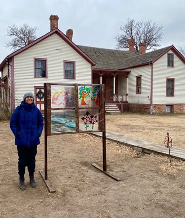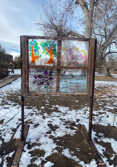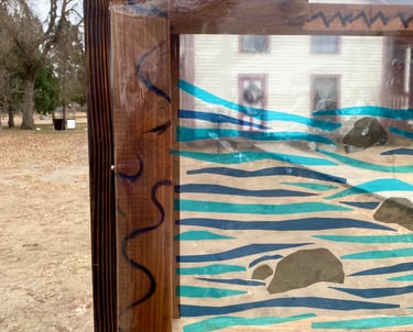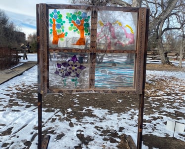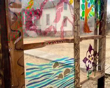 The western architecture of the window frames the various natural elements presented throughout the Cherokee Trail that many indigenous travelers explored for centuries.