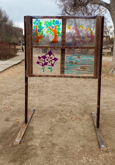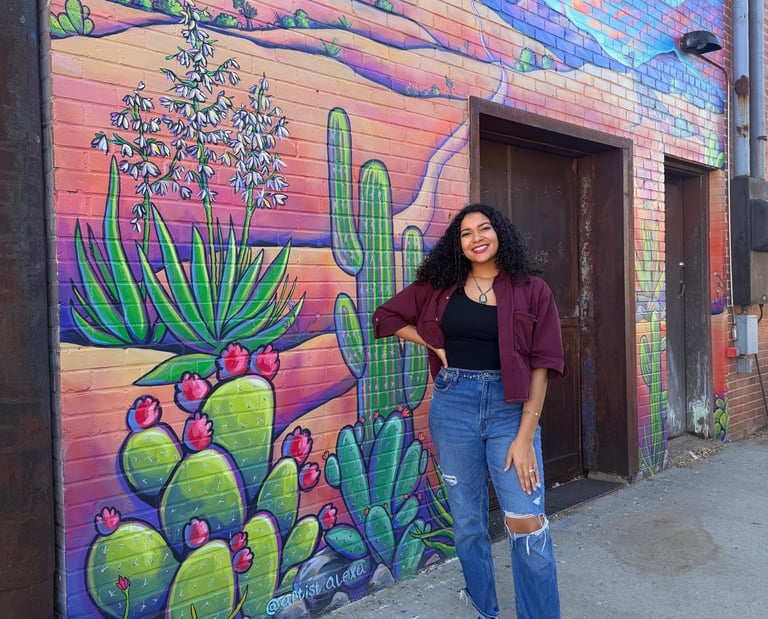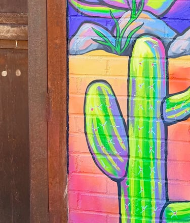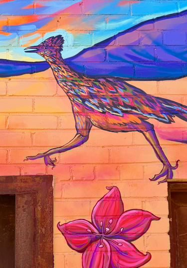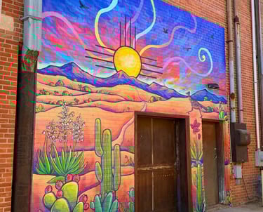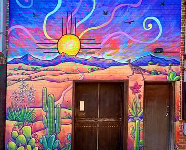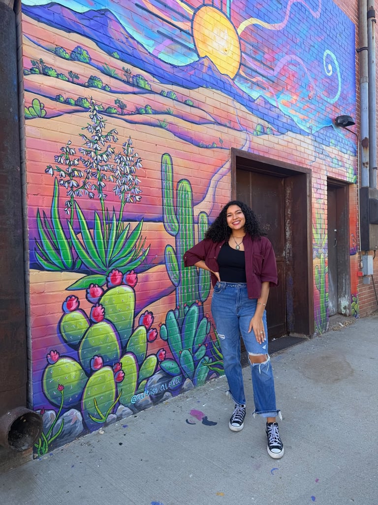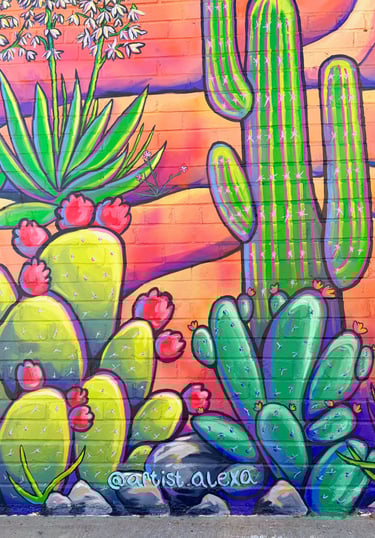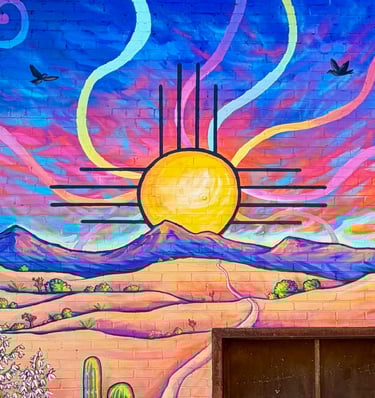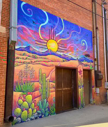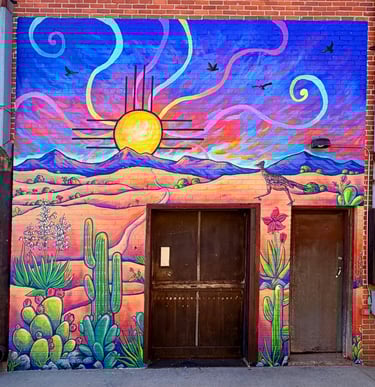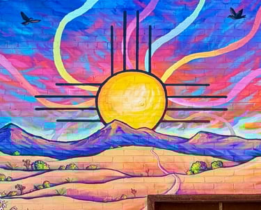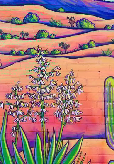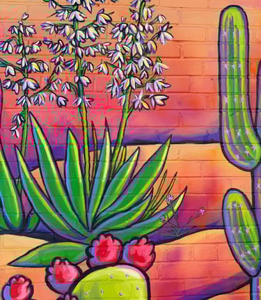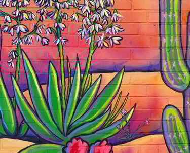 This piece is inspired by the diverse plants and landscapes of the desert. Using vibrant, saturated colors and varied perspectives, along with a striking sunset and New Mexico’s Zia symbol, I aimed to capture the endless beauty of the Southwest. While deserts are often seen as barren, this work highlights their richness, life, and inspiration. It also reflects the importance of respecting and preserving the land that has sustained us for centuries. I hope this piece sparks joy, curiosity, and a deeper appreciation for the desert—look a little closer at the cacti; they’re pretty incredible.