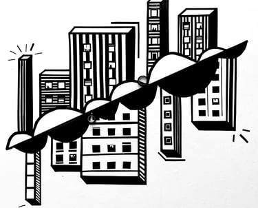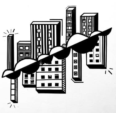 It is off-centered, just like the buildings themselves, to signify how the world is not always even, or how it seems. Nothing is always exact, but everything does have some shape and form. I chose to incorporate design elements and patterns to further represent and visualize something playful and fun, and that everyone can relate to. At some point in our lives we have seen some sort of building, and not the exact same, but still resemble each other. The patterns showcased also act as part of the intentional value, to have contrast between each shape. Instead of discarding the tape roll, I decided to incorporate it in the piece to add more dimension, and as a symbol of motion and movement. I created an installation that implies a multiple of perspectives of city living, and the underlying statement of reality and contrasting thoughts and space.